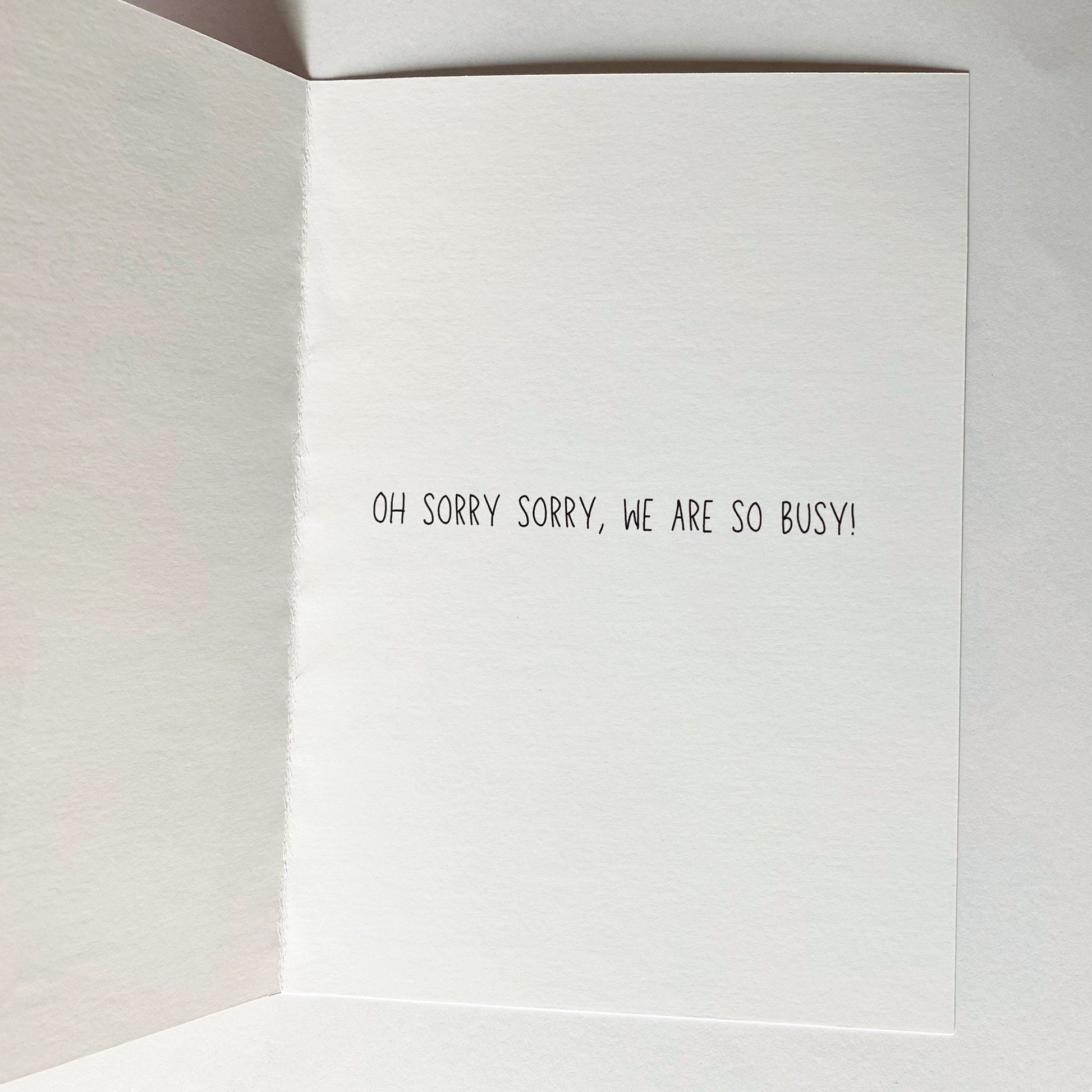 We have two options for this card: blank or with Jin's iconic response "Oh sorry sorry, we are so busy!"