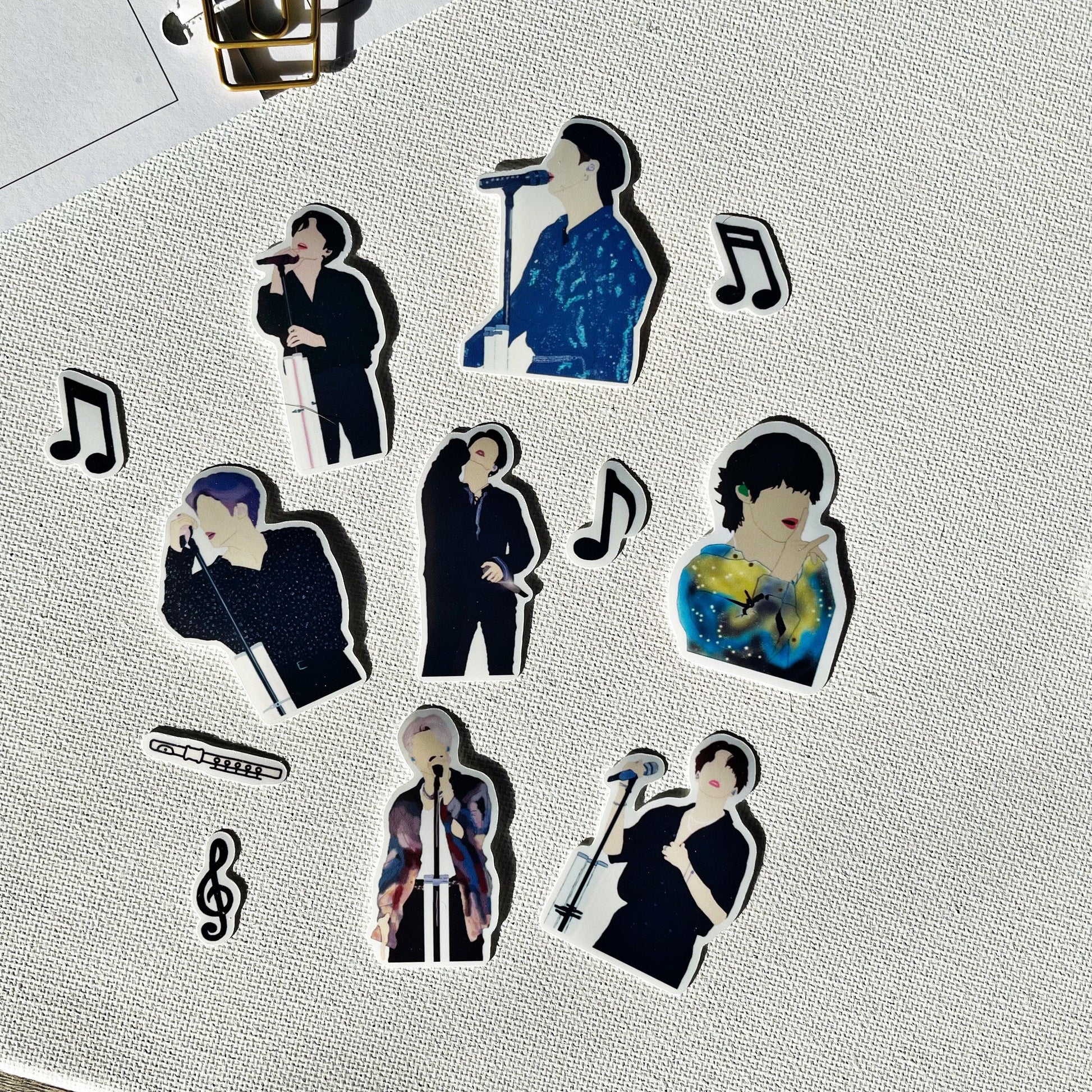 * Five 0.75in glossy vinyl die-cut stickers including musical notes and a flute.