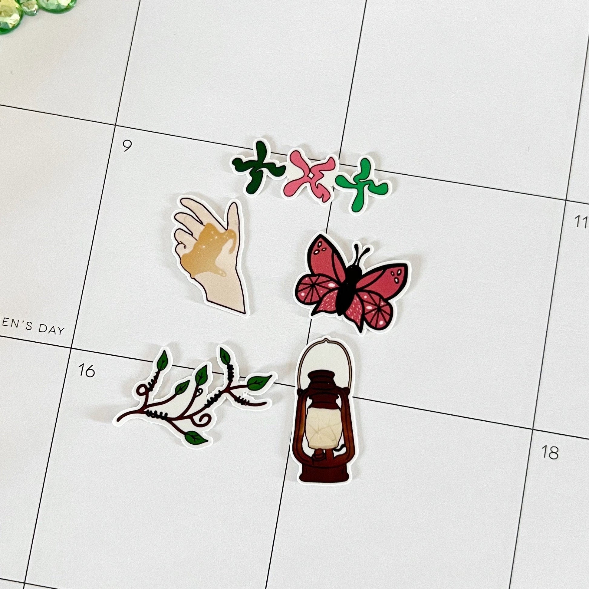 The stickers are water-resistant and ideal for decorating planners, journals, mobile devices, and similar items.