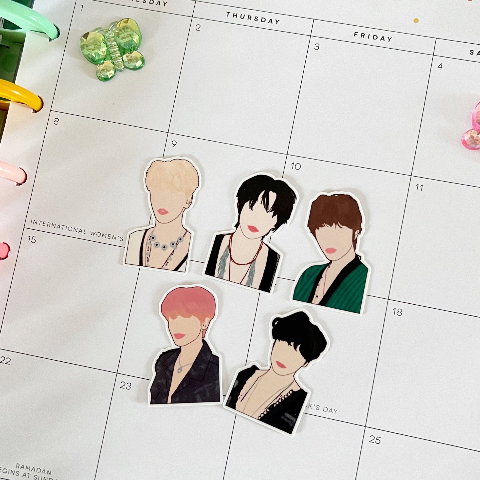 * Five 1.5 in glossy vinyl die-cut stickers, one of each TXT member.